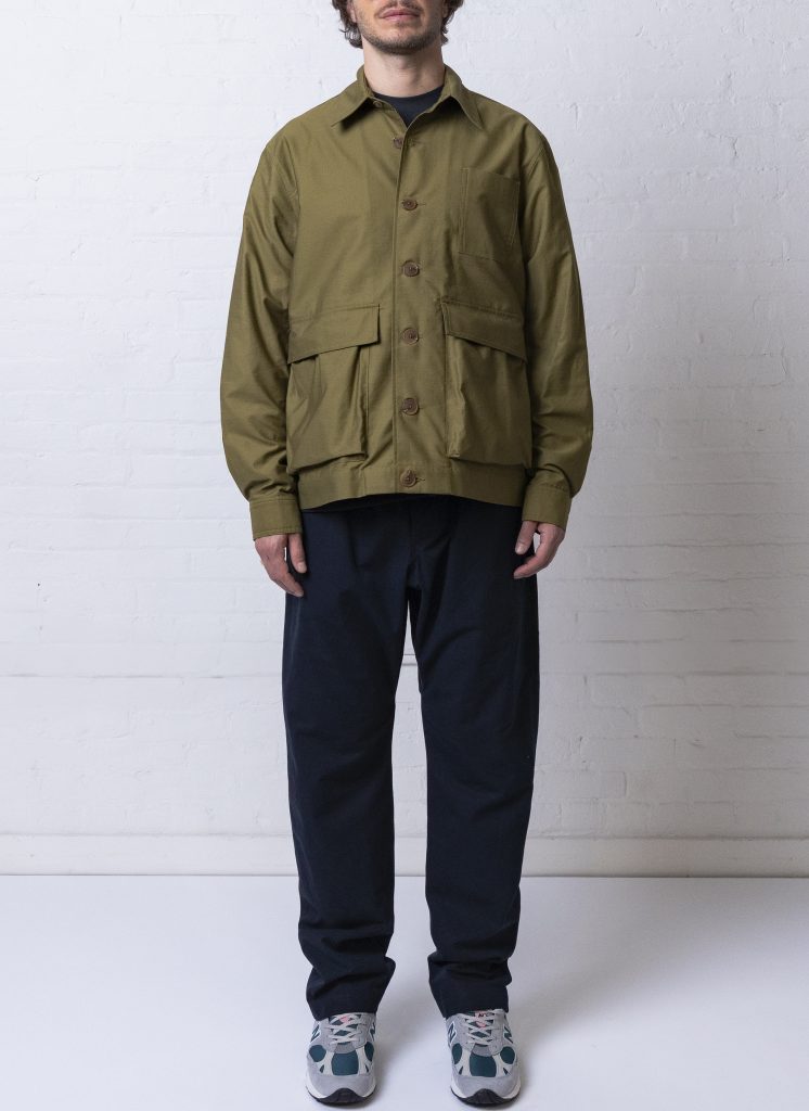 PJCSOL01M-PhotographerJacketInOliveCrepeSateen-01 | PHOTOGRAPHER JACKET IN MIDNIGHT BLUE TUMBLED CREPE SATEEN