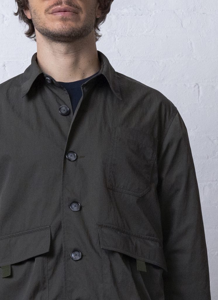 PJNTAG01M-PhotographerJacketInArmyGreenNylonTwill-05 | PHOTOGRAPHER JACKET IN MIDNIGHT BLUE TUMBLED CREPE SATEEN