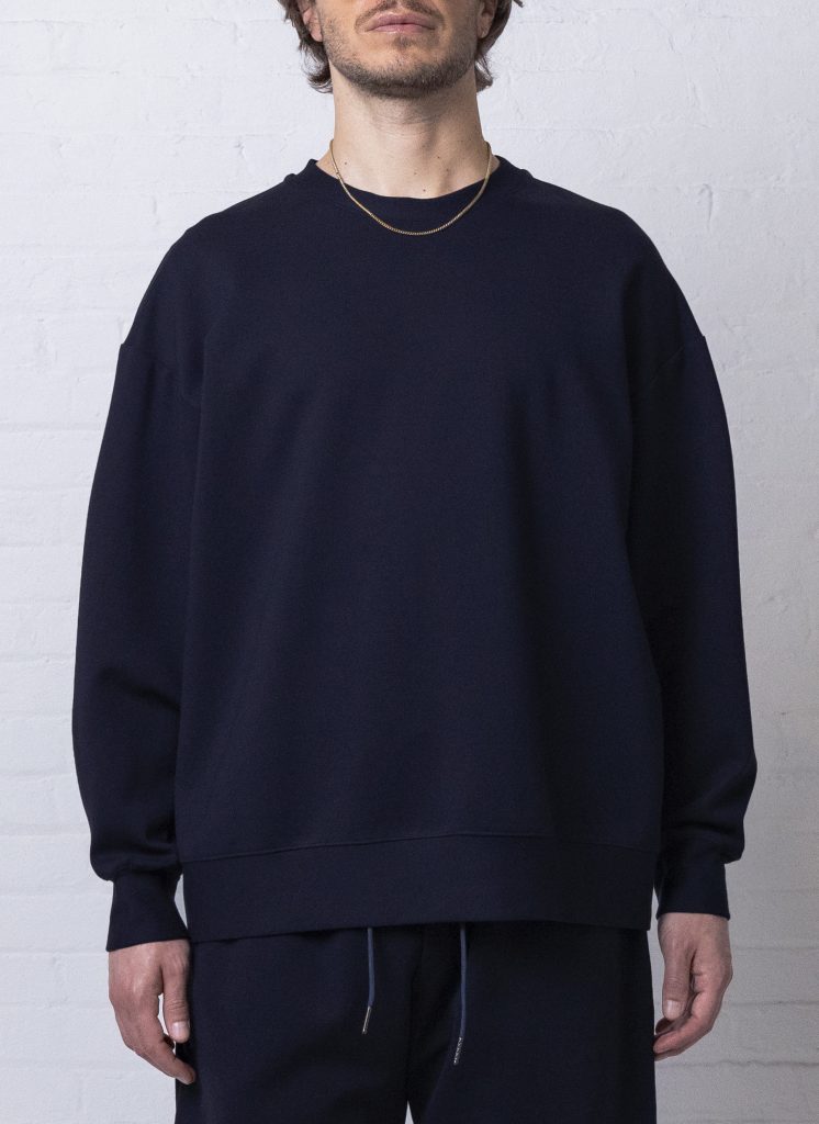 LCRNMB00-LooseCrewGussetSweatshirtInMidnightBlue-03 | LOOSE CREW GUSSET SWEATSHIRT IN OFF-WHITE
