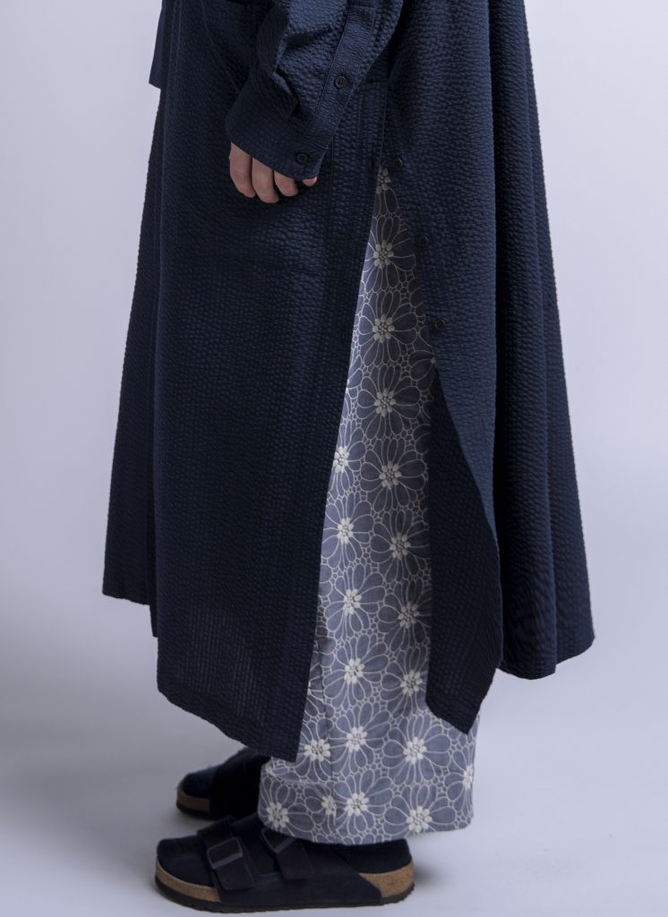 KSSCMB000M-RelaxedKaftanShirtInMidnightBlueSeersuckerCrinkle-06 | RELAXED KAFTAN SHIRT IN MIDNIGHT BLUE SEERSUCKER CRINKLE