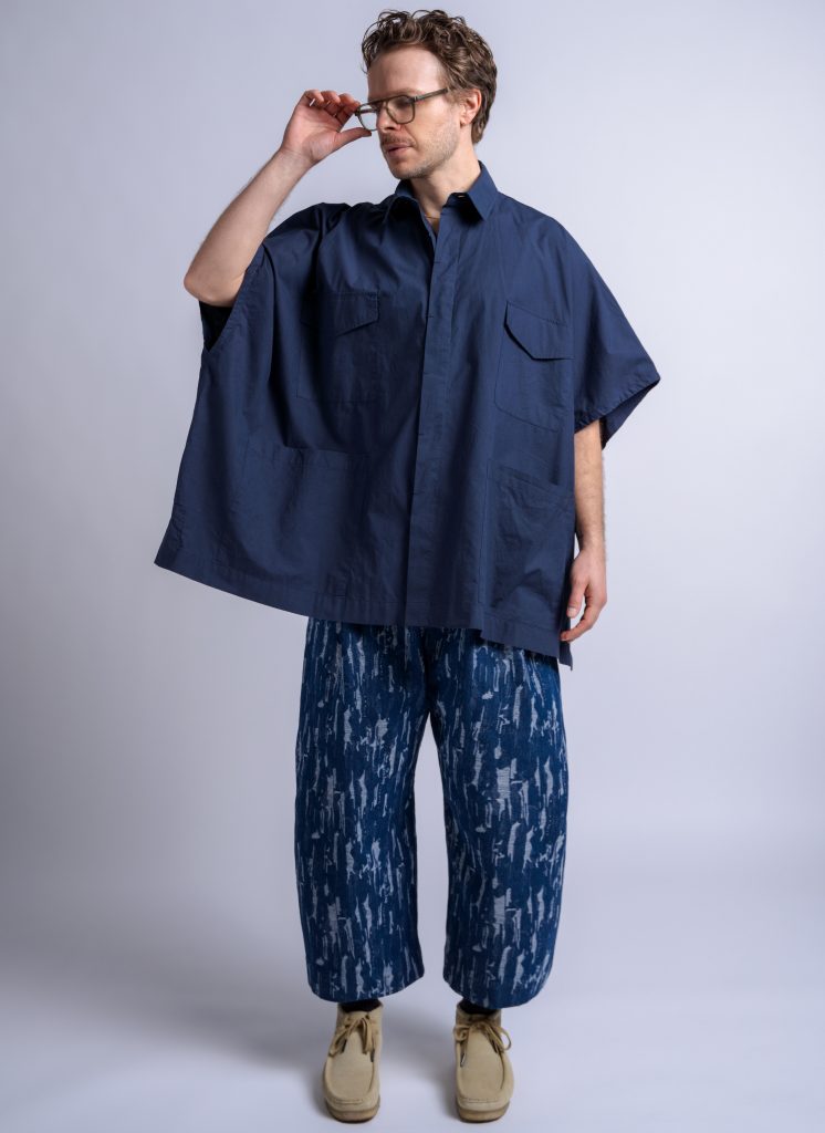 POWPMB00M-4PocketShirtPonchoInMidnightBlueWashedPoplin-01 | 4 POCKET SHIRT PONCHO IN MIDNIGHT BLUE WASHED POPLIN