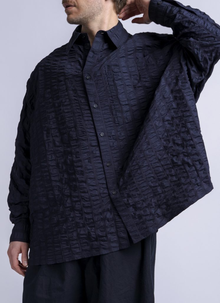 IOMCMB000M-OversizedIOShirtInMidnightBlueMacroCrinkle-04 | OVERSIZED IO SHIRT IN MIDNIGHT BLUE MACRO LINE CRINKLE