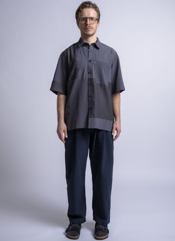 SSPWCH01M-SSPanelBoxShirtInCharcoalPatchwork-02 | S/S PANEL BOX SHIRT IN CHARCOAL PATCHWORK