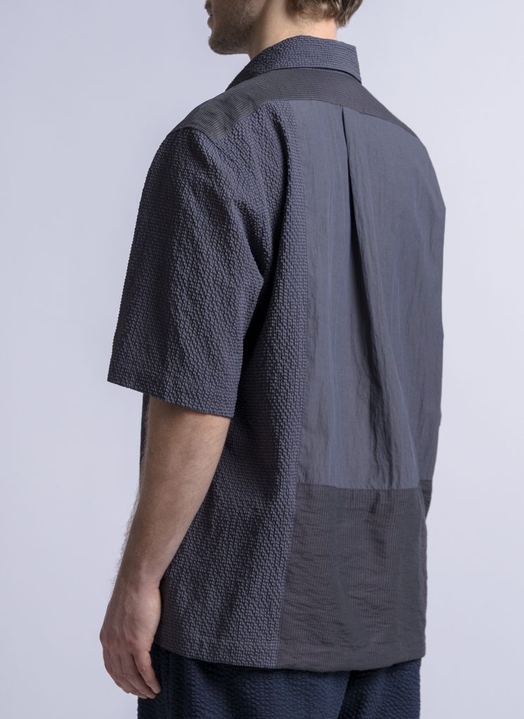 SSPWCH01M-SSPanelBoxShirtInCharcoalPatchwork-08 | S/S PANEL BOX SHIRT IN CHARCOAL PATCHWORK