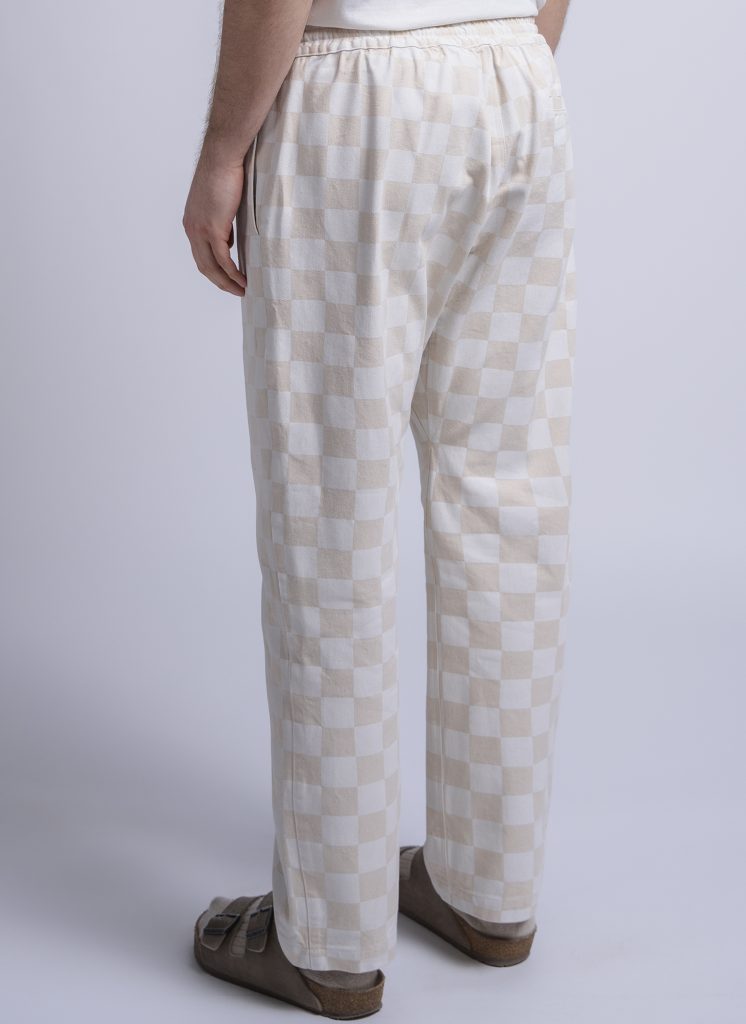 EPCKNP01M-RelaxedGussetEasyPantInNatural&ParchmentCheckTwill-05 | RELAXED GUSSET EASY PANT IN NATURAL & PARCHMENT CHECK TWILL