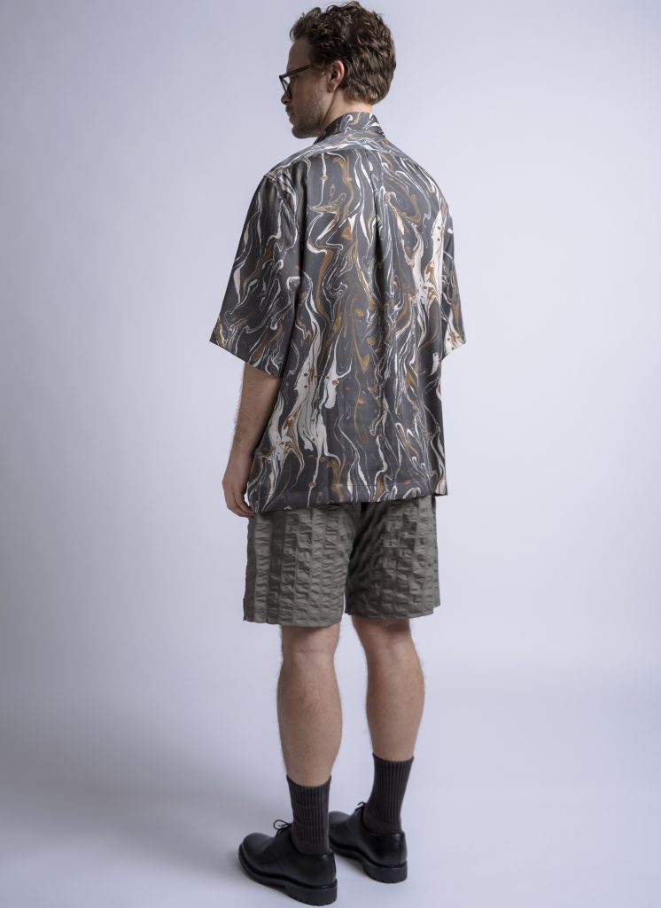 SSMPCH01-SSBoxShirtInCharcoalMarblePrint-05 | S/S BOX SHIRT IN CHARCOAL MARBLE PRINT