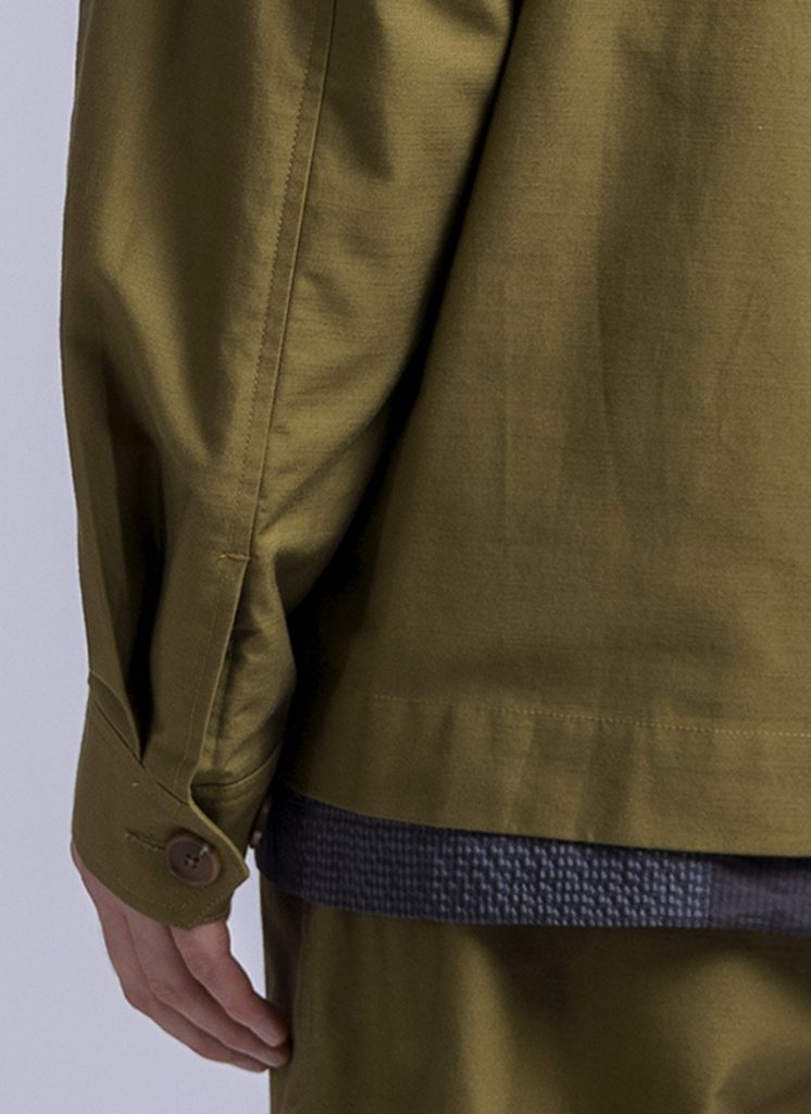 PJCSOL01M-PhotographerJacketInOliveCrepeSateen-011 | PHOTOGRAPHER JACKET IN OLIVE TUMBLED CREPE SATEEN