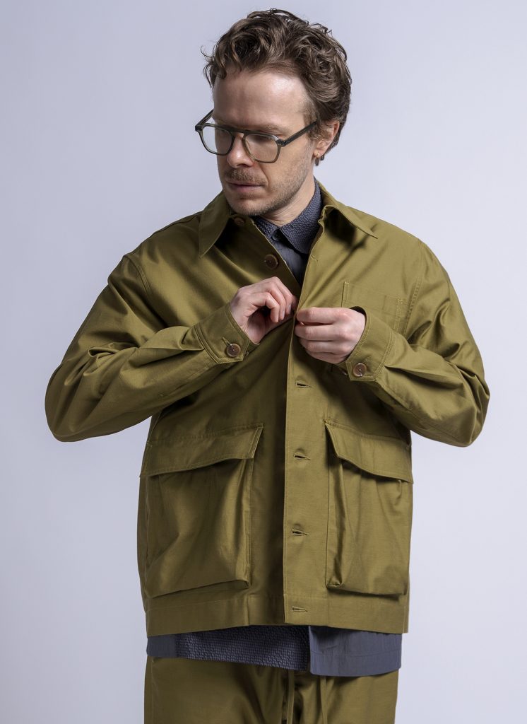 PJCSOL01M-PhotographerJacketInOliveCrepeSateen-012 | PHOTOGRAPHER JACKET IN OLIVE TUMBLED CREPE SATEEN