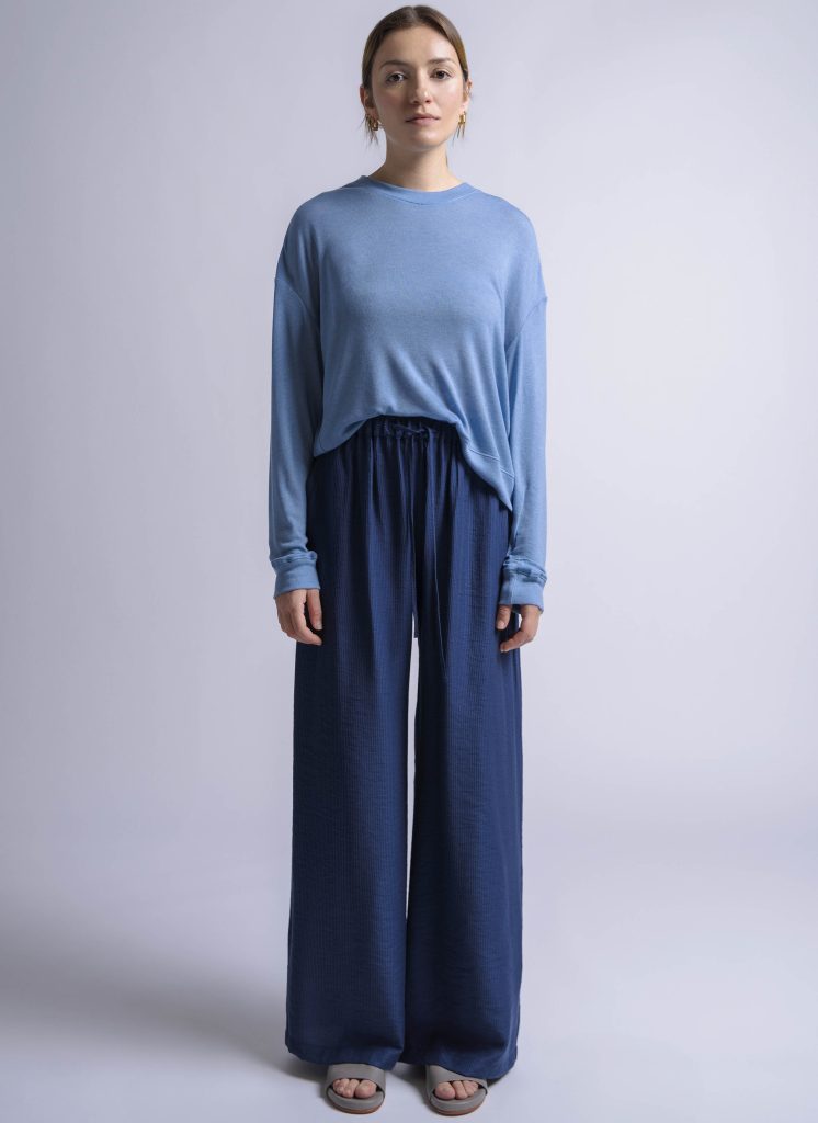 EPDOOC00W-EasyPantInOceanStripedDobby-01 | STRAIGHT EASY PANT IN OCEAN STRIPED DOBBY