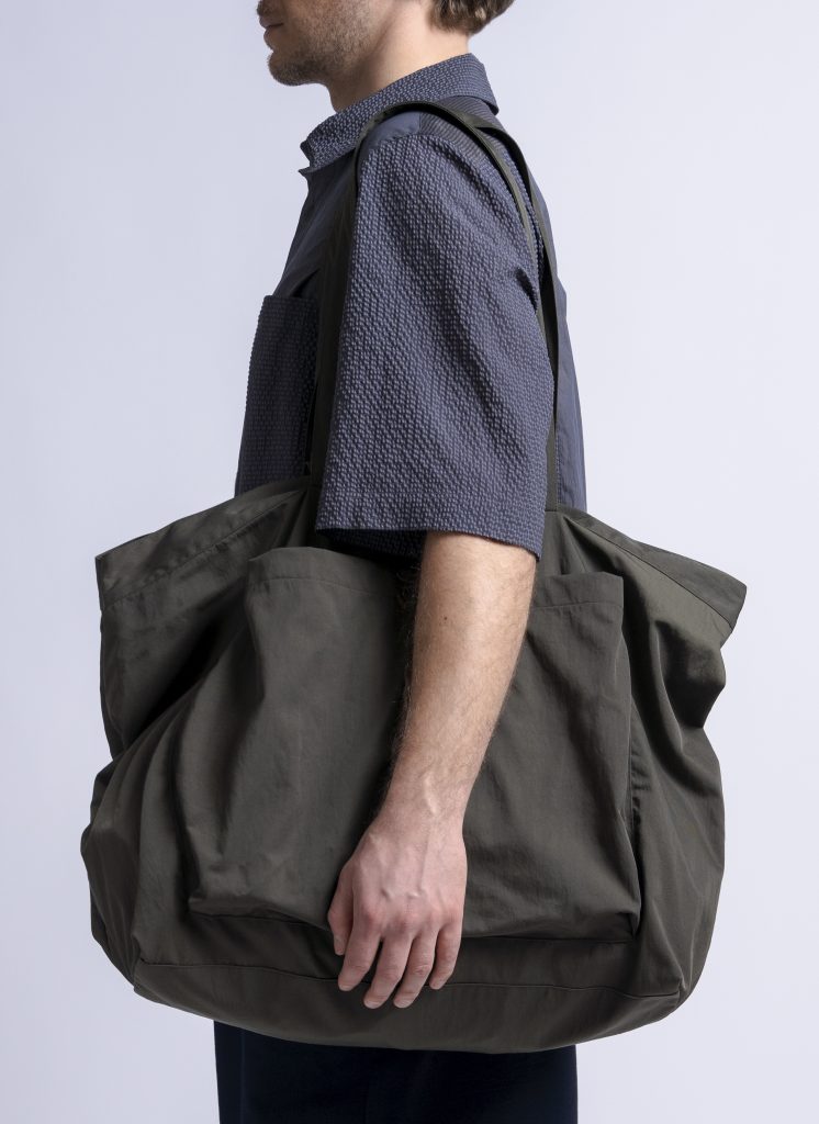 TRNTAG01-TriPocketSlouchyToteInArmyGreenNylonTwill-03 | 3 POCKET SLOUCHY TOTE IN DARK KHAKI NYLON TWILL