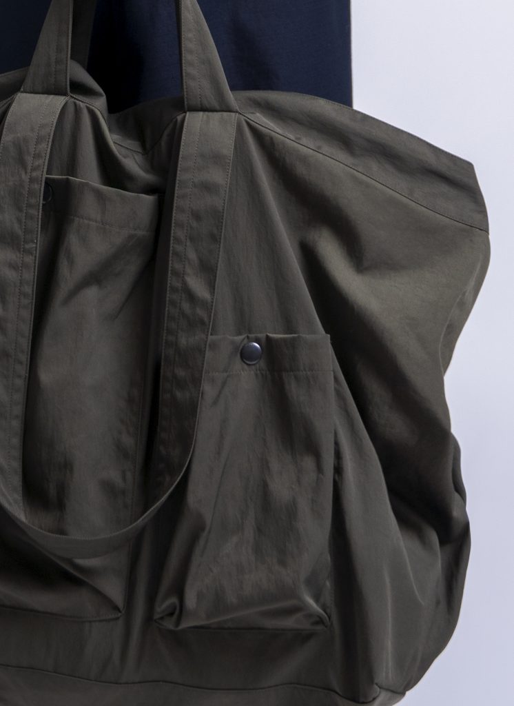 TRNTAG01-TriPocketSlouchyToteInArmyGreenNylonTwill-05 | 3 POCKET SLOUCHY TOTE IN DARK KHAKI NYLON TWILL