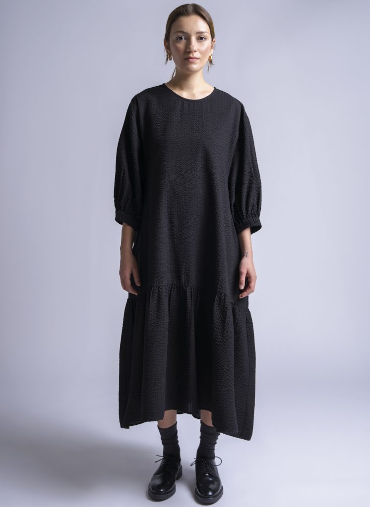 VGSCBK00-ViragoDressInBlackSeersuckerCrinkle-01 | VIRAGO DRESS IN SKY BLUE SEERSUCKER CRINKLE