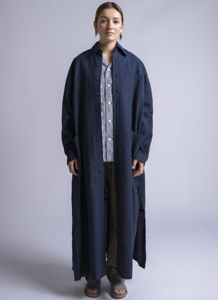 KSSCMB000W-RelaxedKaftanShirtInMidnightBlueSeersuckerCrinkle-01 | RELAXED KAFTAN SHIRT IN WHITE WASHED POPLIN
