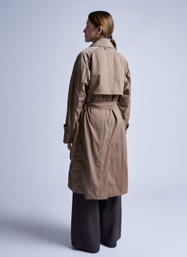 PTNTDKW-PeakedLapelTrenchCoatInDarkKhakiNylonTwill(WomensCut)-05 | PEAKED LAPEL TRENCH COAT IN DARK KHAKI (WOMEN’S CUT)