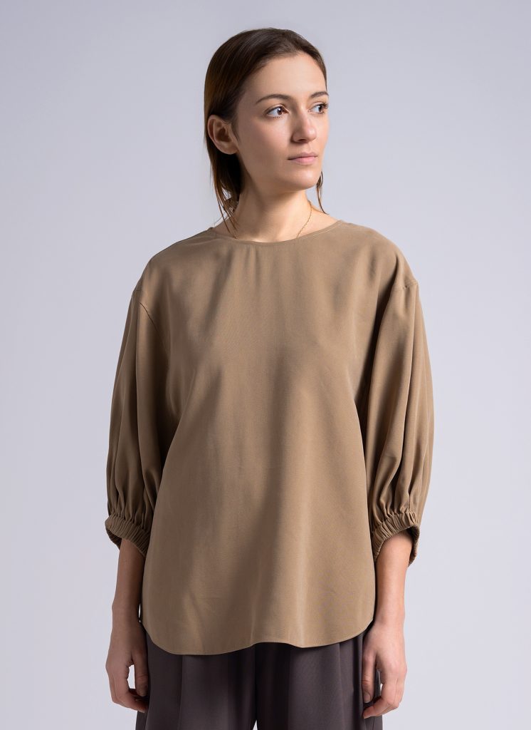 VTVPKH00_ViragoTopInKhakiBrushedViscoseTwill-05 | OVERSIZED IO SHIRT IN MIDNIGHT BLUE MACRO LINE CRINKLE