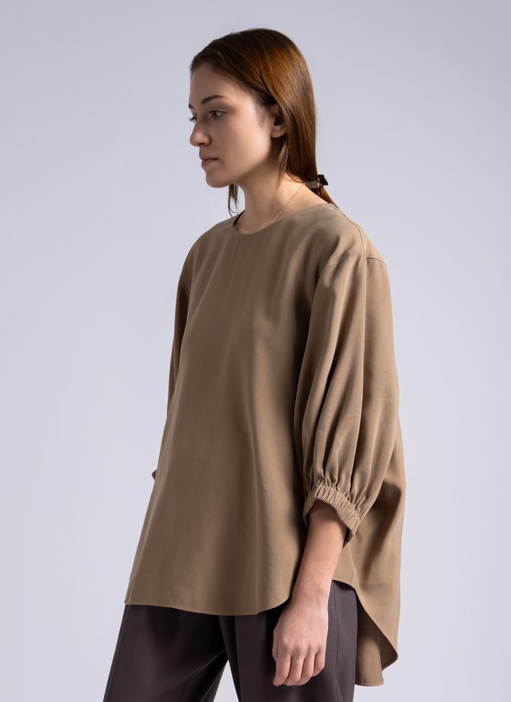VTVPKH00_ViragoTopInKhakiBrushedViscoseTwill-06 | OVERSIZED IO SHIRT IN MIDNIGHT BLUE MACRO LINE CRINKLE
