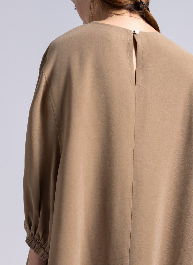 VTVPKH00_ViragoTopInKhakiBrushedViscoseTwill-09 | OVERSIZED IO SHIRT IN MIDNIGHT BLUE MACRO LINE CRINKLE