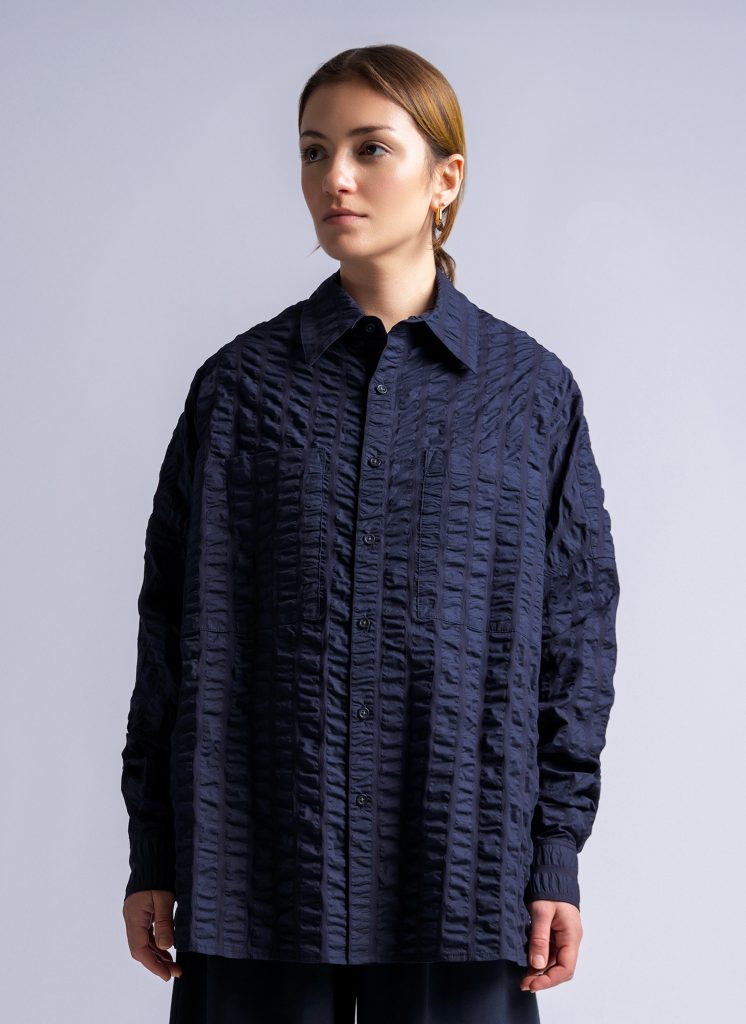 IOMCMB00W_OversizedIOShirtInMidnightBlueMacroCrinkle-08 | OVERSIZED IO SHIRT IN MIDNIGHT BLUE MACRO LINE CRINKLE
