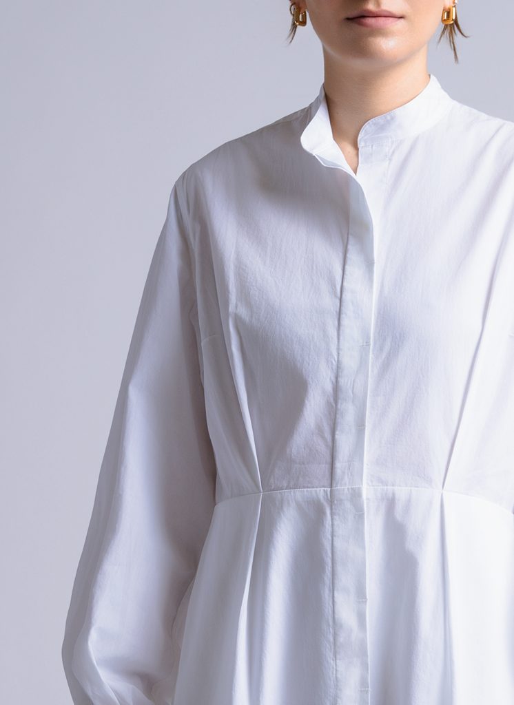 DLCOWH00W-LanternDressInWhiteWashedPoplin-07 | LANTERN SHIRT DRESS IN WHITE WASHED POPLIN