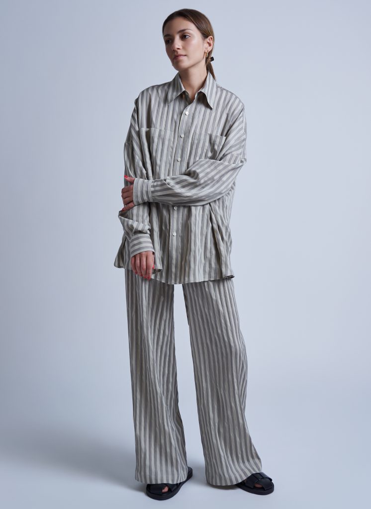 EPWSBE00-EasyPantInBeigeMixWideRippleStripe-09 | STRAIGHT EASY PANT IN BEIGE MIX WIDE RIPPLE STRIPE