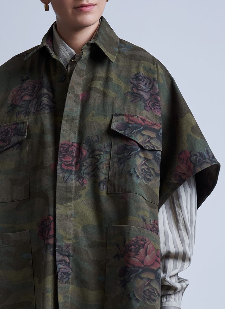 POGCAG00W-4PocketShirtPonchoInArmyGreenGardenCamo-04 | PHOTOGRAPHER JACKET IN ARMY GREEN GARDEN CAMO