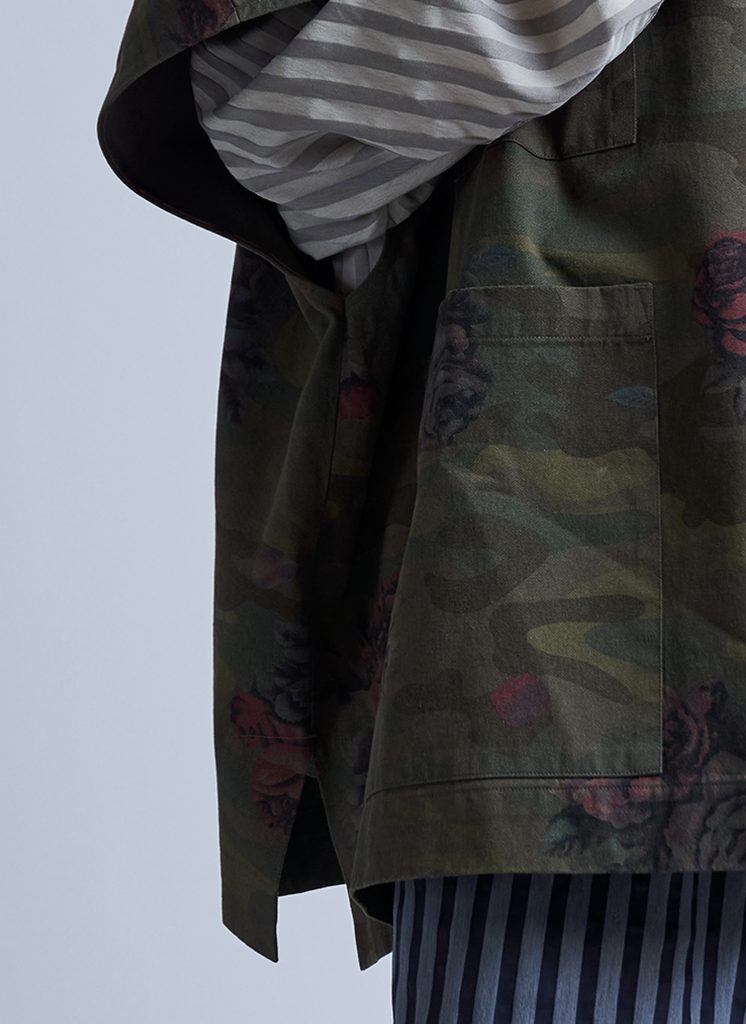 POGCAG00W-4PocketShirtPonchoInArmyGreenGardenCamo-05 | PHOTOGRAPHER JACKET IN ARMY GREEN GARDEN CAMO