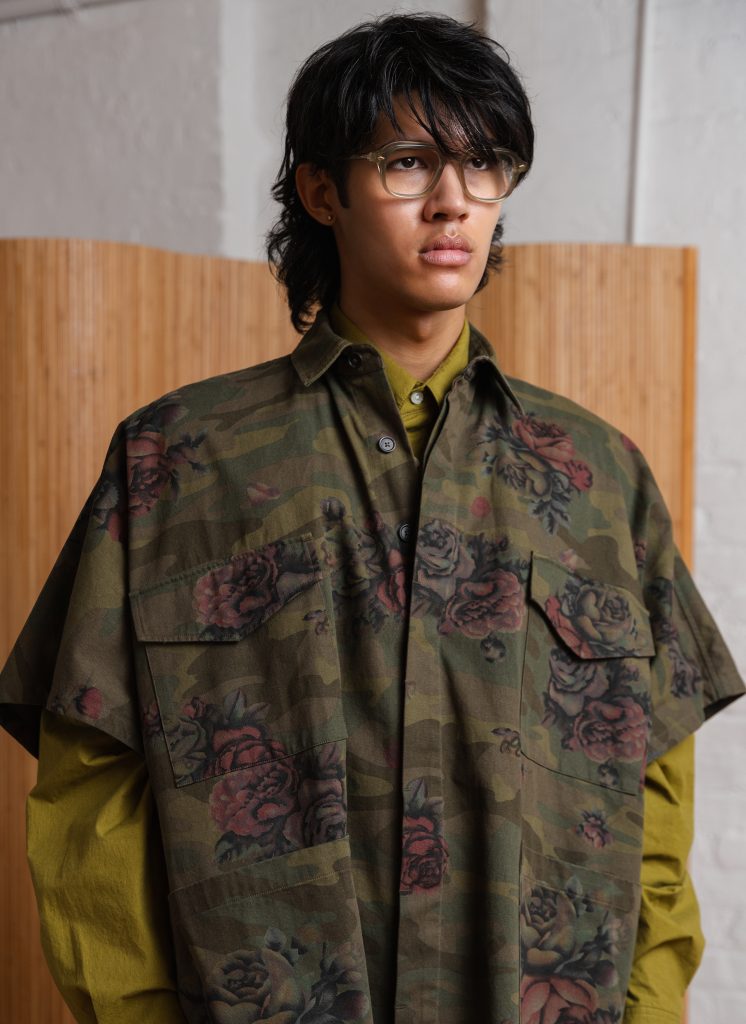 POGCAG00M-4PocketShirtPonchoInArmyGreenGardenCamo-03 | OVERSIZED IO SHIRT IN BLUE MIX WIDE RIPPLE STRIPE