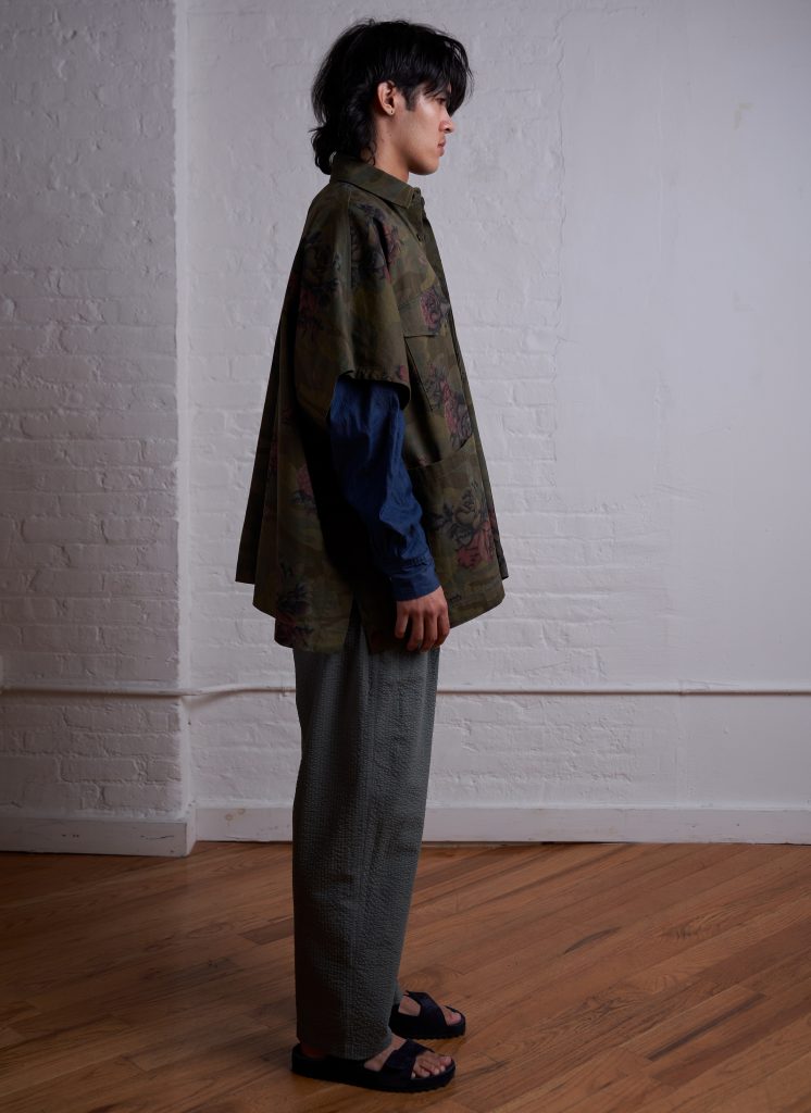 POGCAG00M-4PocketShirtPonchoInArmyGreenGardenCamo-02 | OVERSIZED IO SHIRT IN BLUE MIX WIDE RIPPLE STRIPE