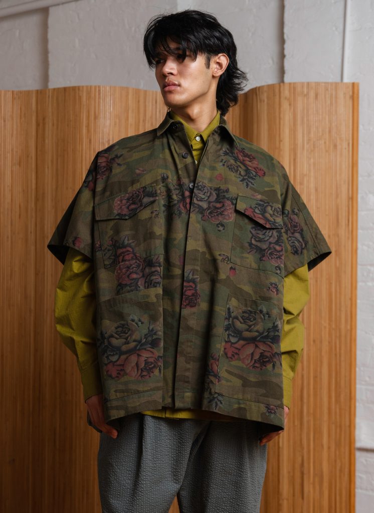 POGCAG00M-4PocketShirtPonchoInArmyGreenGardenCamo-04 | OVERSIZED IO SHIRT IN BLUE MIX WIDE RIPPLE STRIPE