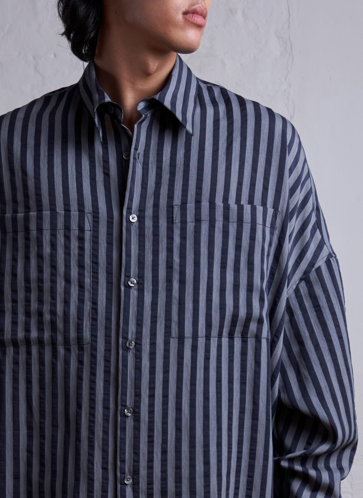 IOWSBL00M-OversizedIOShirtInBlueMixWideRippleStripe-03 | OVERSIZED IO SHIRT IN BLUE MIX WIDE RIPPLE STRIPE