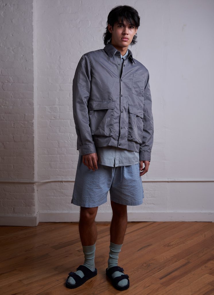 PJCNGS01-PhotographerInGreySilverCrushedNylonTwill-01 | PAINTER SHIRT IN WHITE WASHED POPLIN