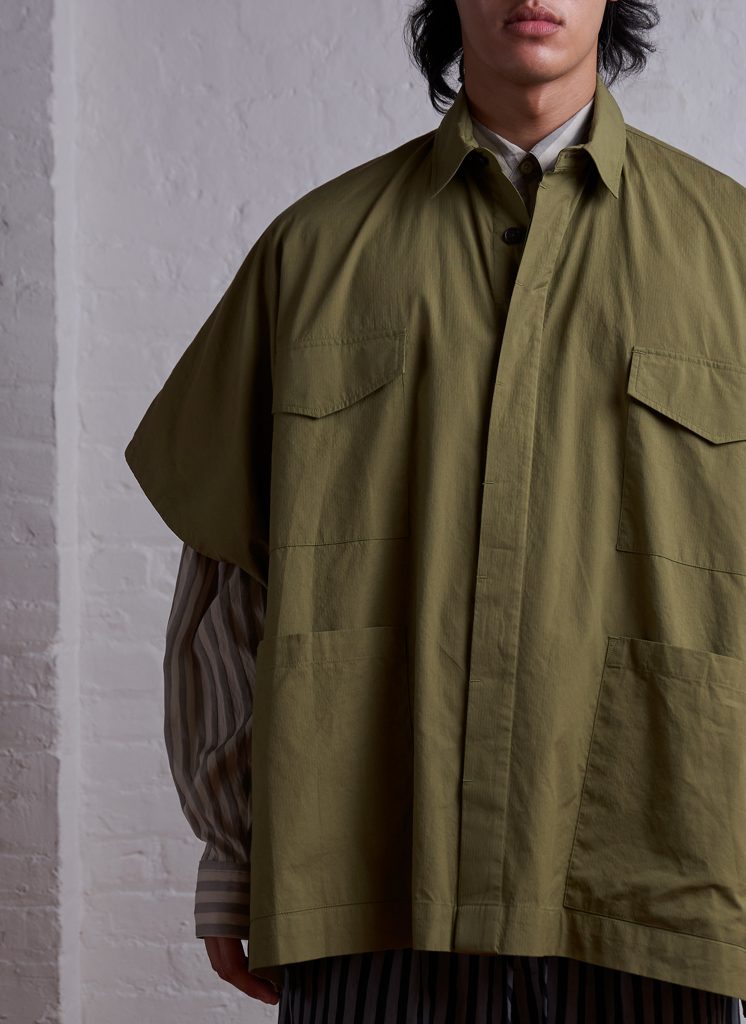 POLDAG01-4PocketShirtPonchoInArmyGreenWashedLineDobby-03 | PAINTER SHIRT IN WHITE WASHED POPLIN