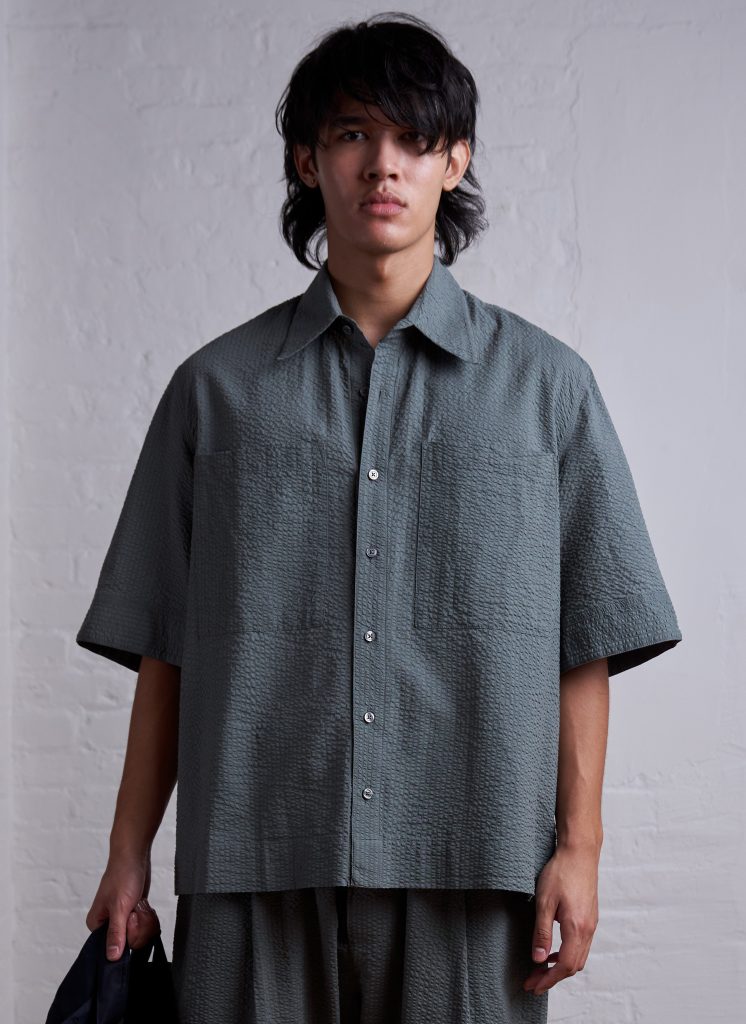 MSSCSG01-SSModernistShirtInSageGreySeersuckerCrinkle-04 | PAINTER SHIRT IN WHITE WASHED POPLIN