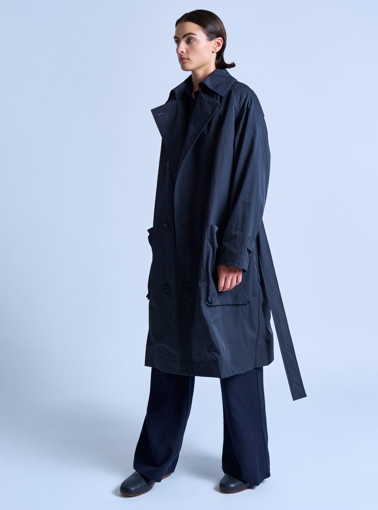 PTNTCH00UNIW-PeakedLapelTrenchCoatInCharcoalNylonTwill-05 | PEAKED LAPEL TRENCH COAT IN CHARCOAL NYLON TWILL