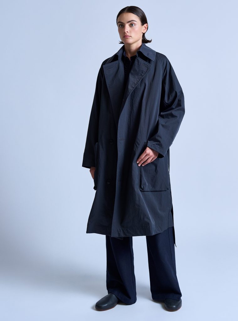 PTNTCH00UNIW-PeakedLapelTrenchCoatInCharcoalNylonTwill-06 | PEAKED LAPEL TRENCH COAT IN CHARCOAL NYLON TWILL