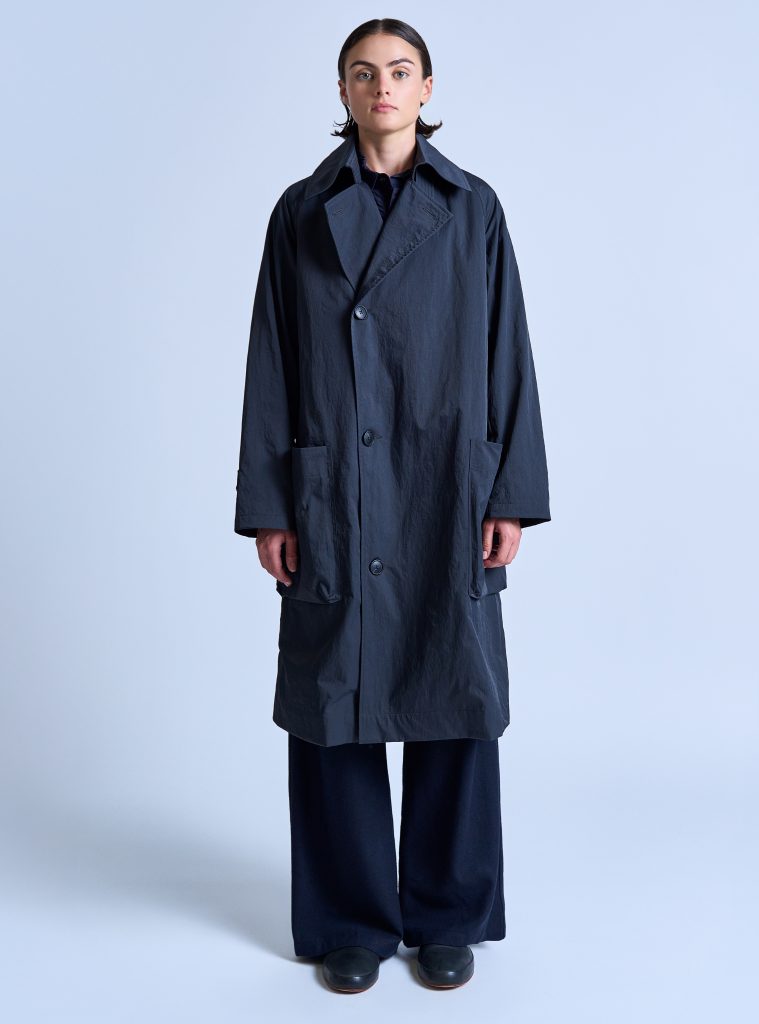 PTNTCH00UNIW-PeakedLapelTrenchCoatInCharcoalNylonTwill-07 | PEAKED LAPEL TRENCH COAT IN CHARCOAL NYLON TWILL