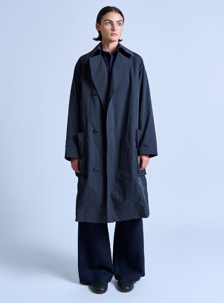 PTNTCH00UNIW-PeakedLapelTrenchCoatInCharcoalNylonTwill-013 | PEAKED LAPEL TRENCH COAT IN CHARCOAL NYLON TWILL