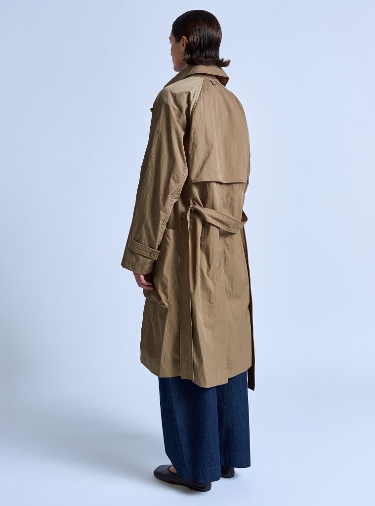 PTNTDK00UNIW-PeakedLapelTrenchCoatInDarkKhakiNylonTwill-08 | PEAKED LAPEL TRENCH COAT IN DARK KHAKI NYLON TWILL
