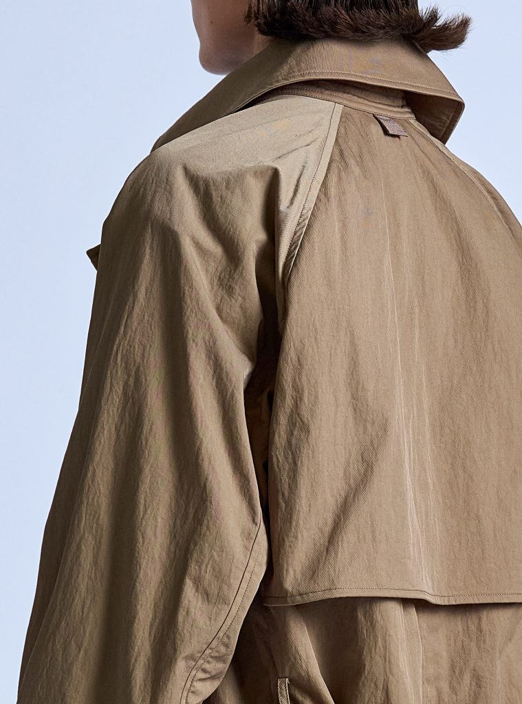 PTNTDK00UNIW-PeakedLapelTrenchCoatInDarkKhakiNylonTwill-09 | PEAKED LAPEL TRENCH COAT IN DARK KHAKI NYLON TWILL