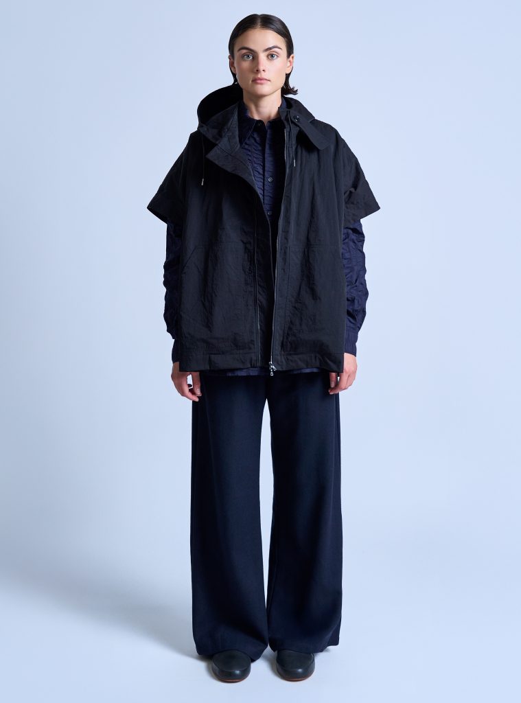PONTBK00W-TrackerHoodedPonchoInBlackNylonTwill-01 | TRACKER PONCHO IN BLACK NYLON TWILL