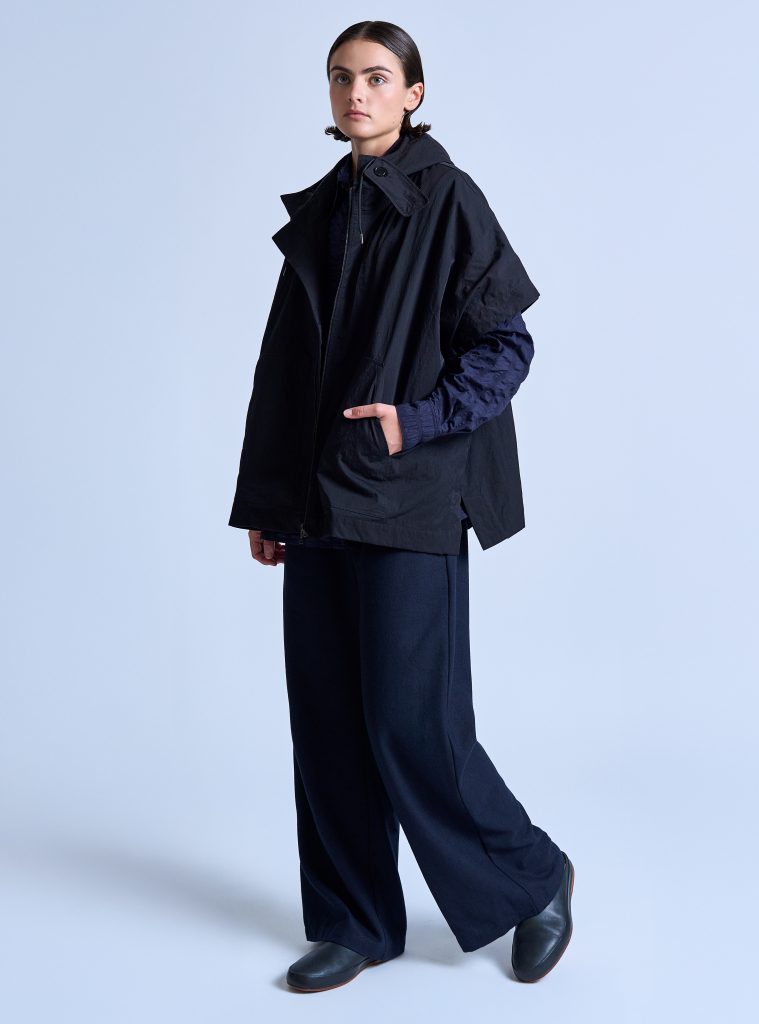 PONTBK00W-TrackerHoodedPonchoInBlackNylonTwill-02 | TRACKER PONCHO IN BLACK NYLON TWILL