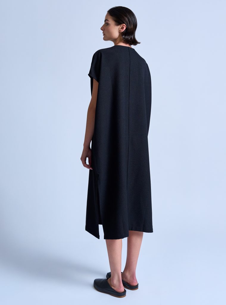 CDPOBK00-ChitonTieDressInBlackoCrepe-05 | CHITON TIE DRESS IN ESPRESSO CREPE