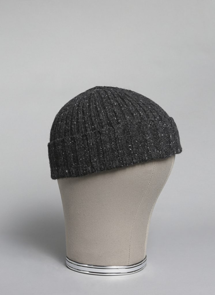Donegal Mohair, Angora, & Merino Rib Beanie in Charcoal – Side View | Donegal Mohair, Angora, & Merino Rib Beanie in Charcoal – Side View
