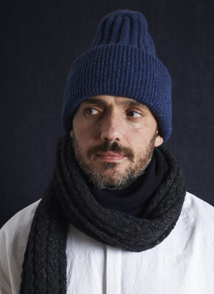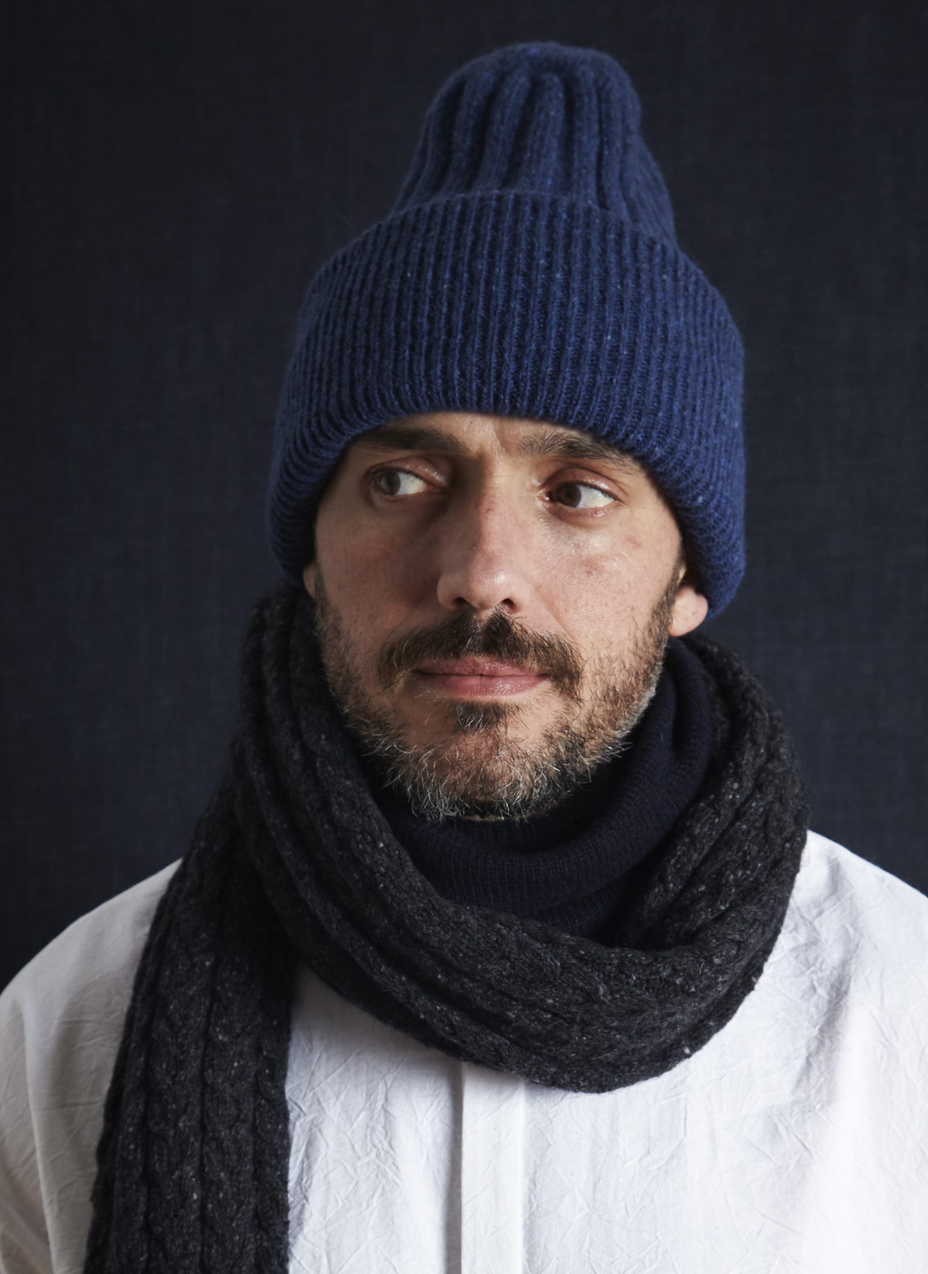 Donegal Mohair, Angora, & Merino Oversized Double-Sided Beanie in Midnight Blue – Front View | Donegal Mohair, Angora, & Merino Oversized Double-Sided Beanie in Midnight Blue – Front View