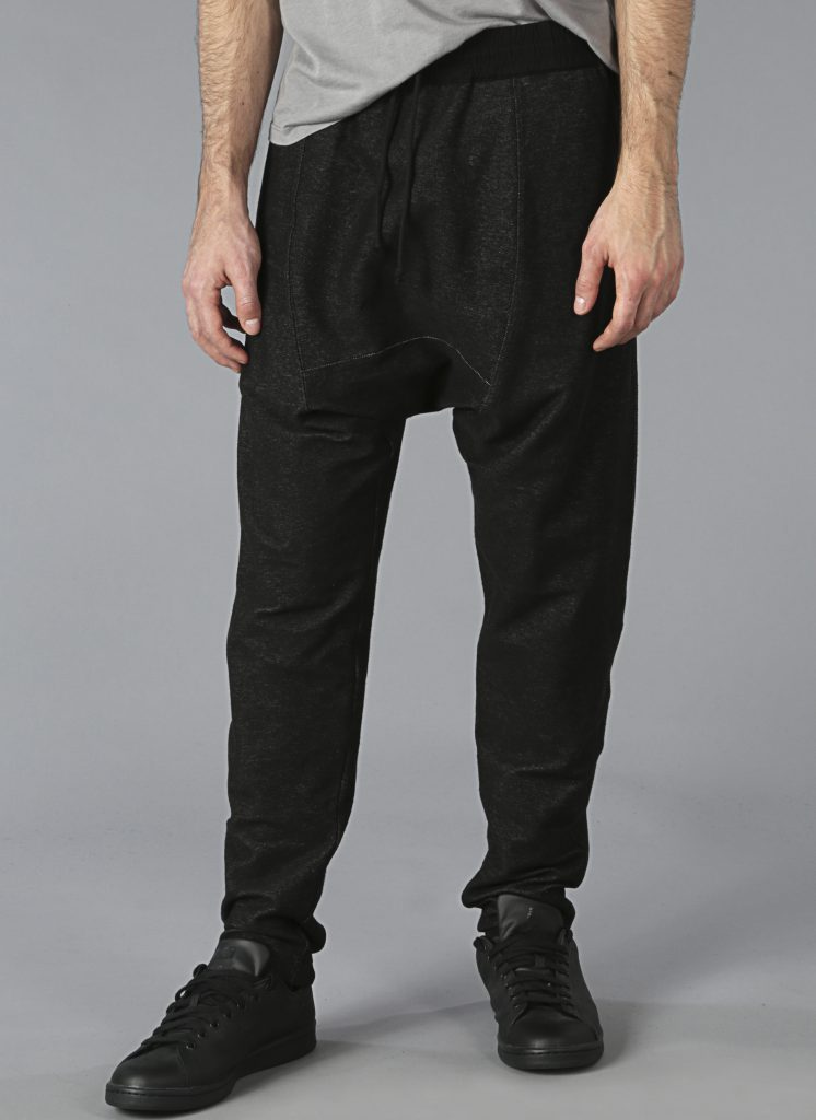 Knit Denim Drop Rise Sweatpants In Black – Front View | Knit Denim Drop Rise Sweatpants In Black – Front View