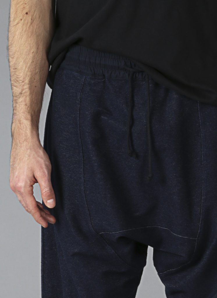 Knit Denim Drop Rise Sweatpants In Midnight Blue – Close Up | Knit Denim Drop Rise Sweatpants In Midnight Blue – Close Up