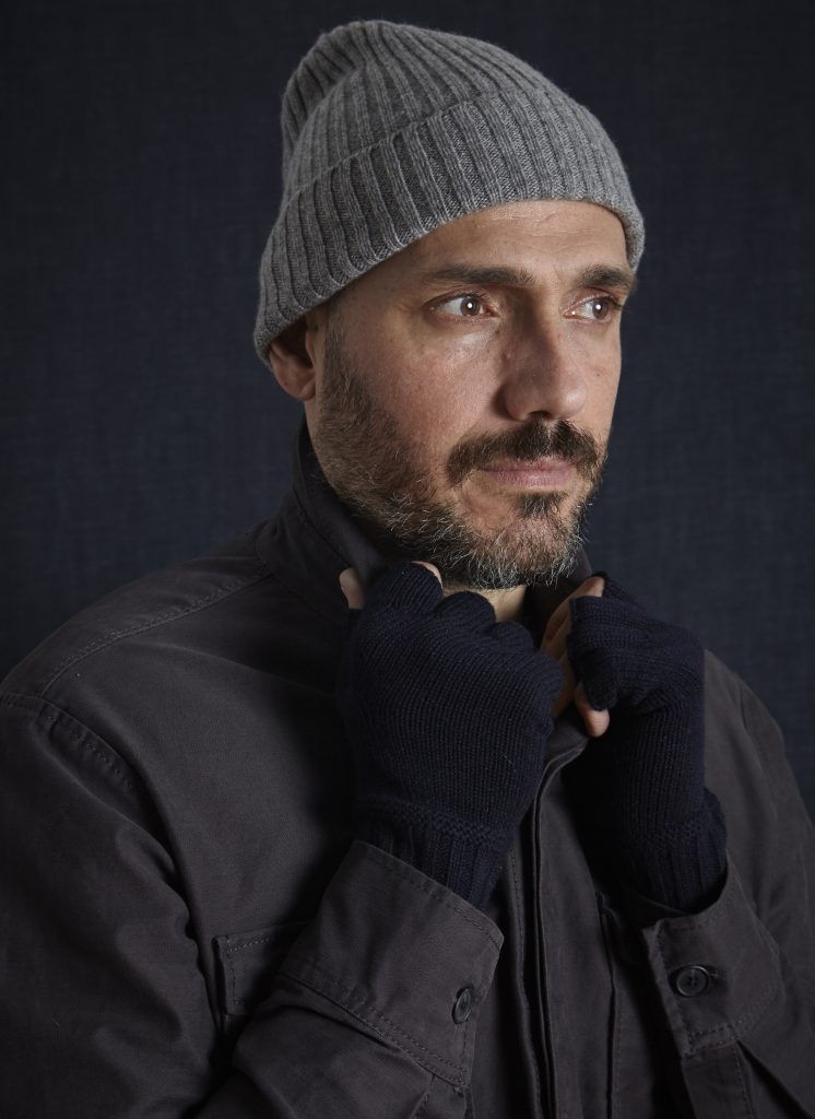 Cashmere Fingerless Gloves in Midnight Blue – Side View | Cashmere Fingerless Gloves in Midnight Blue – Side View