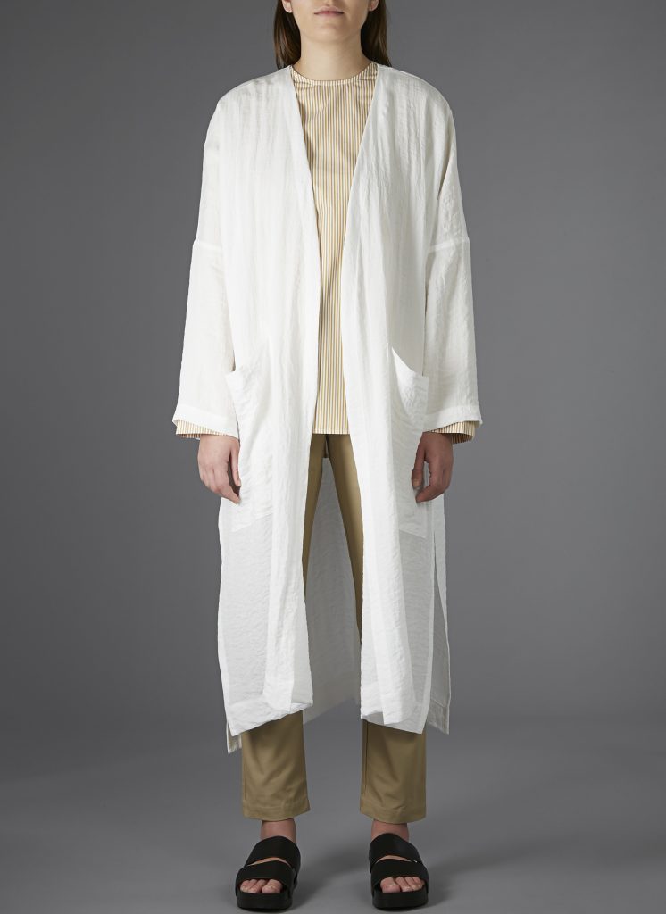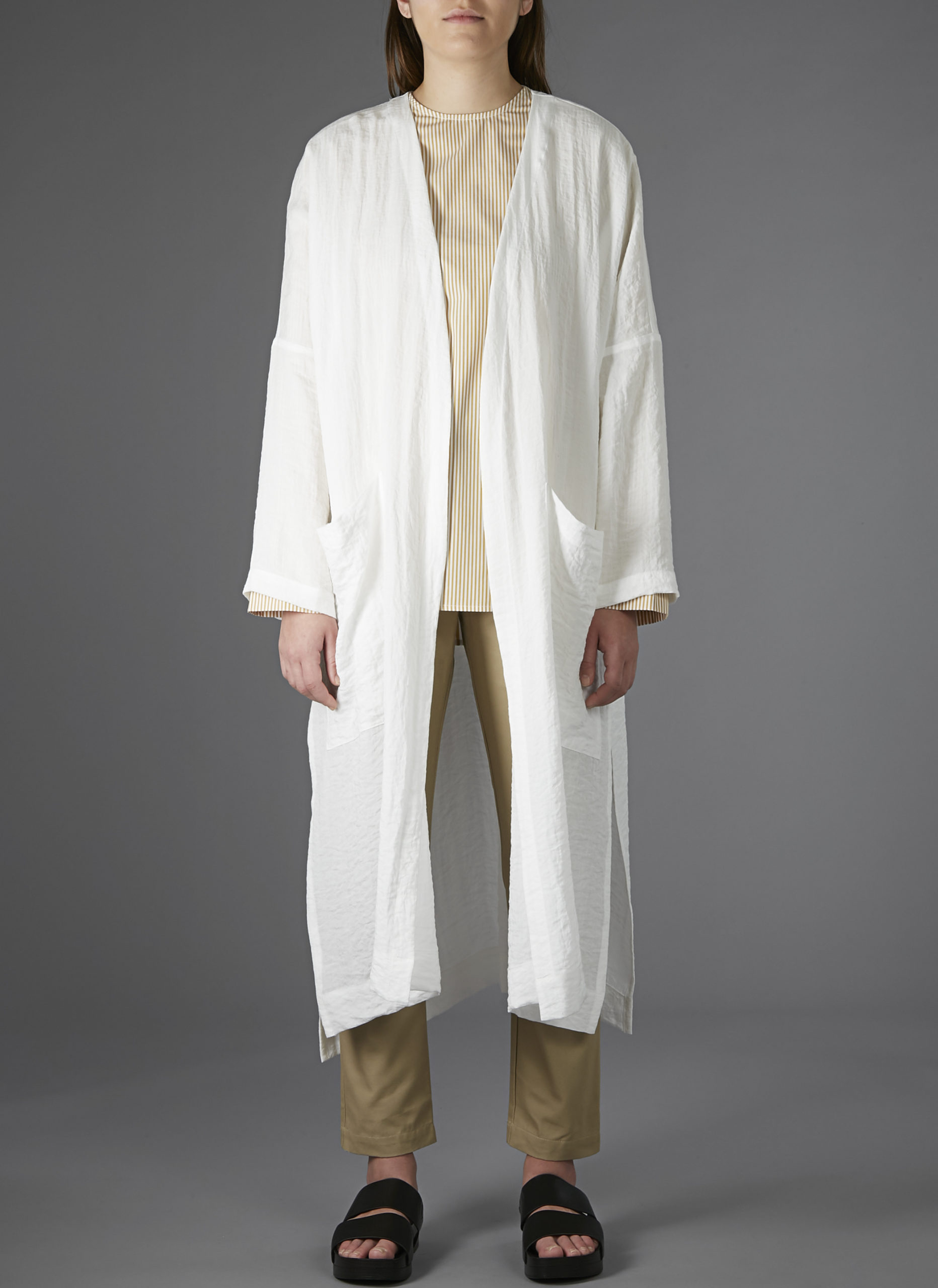 PCRCWH00-PatchPocketOpenKimonoInWhiteRippleCloth-01 | PCRCWH00-PatchPocketOpenKimonoInWhiteRippleCloth-01
