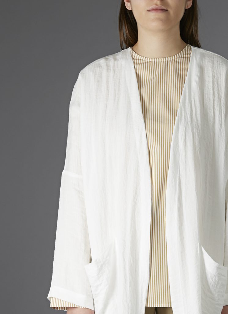 PCRCWH00-PatchPocketOpenKimonoInWhiteRippleCloth-02 | PCRCWH00-PatchPocketOpenKimonoInWhiteRippleCloth-02
