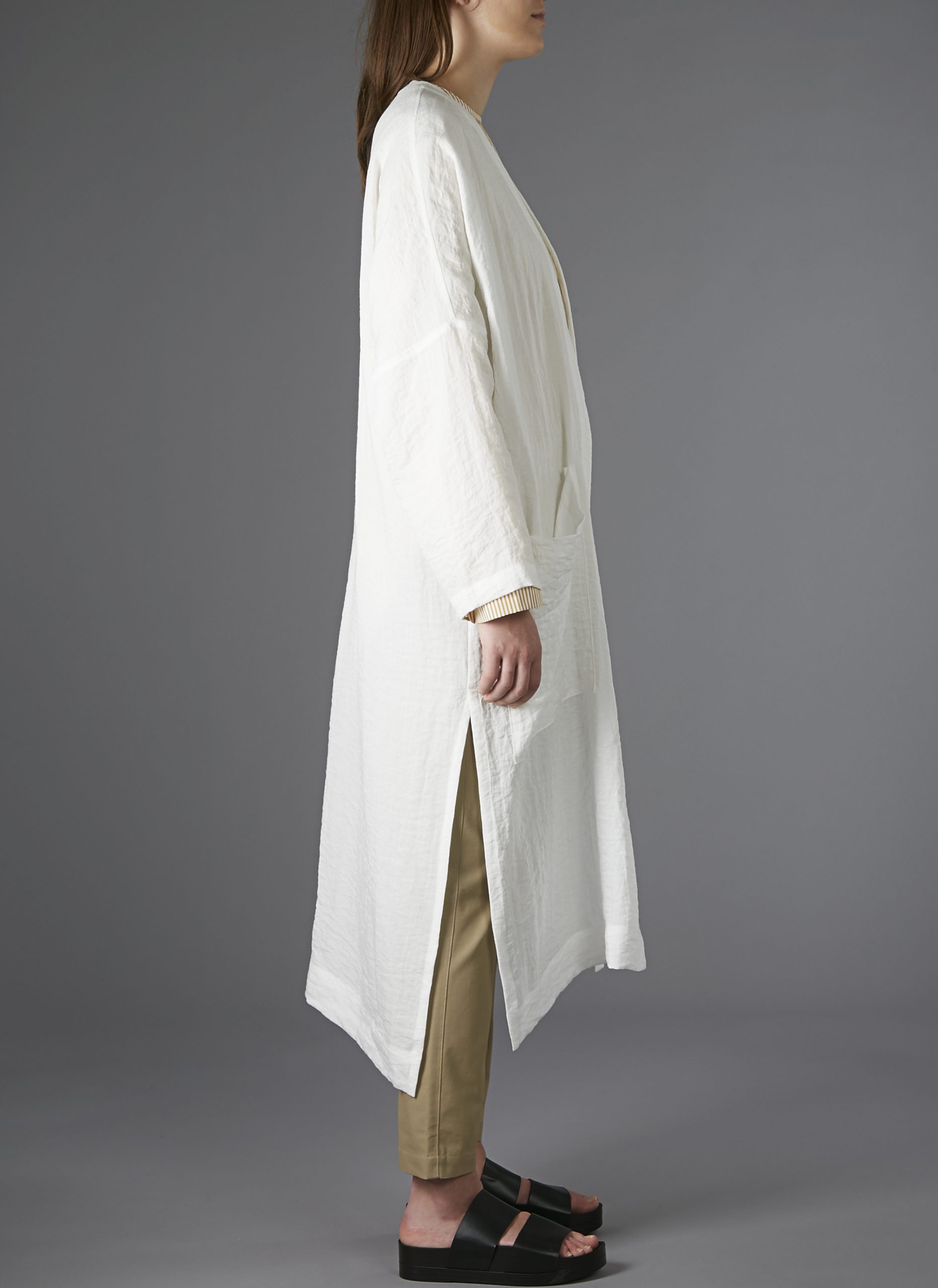 PCRCWH00-PatchPocketOpenKimonoInWhiteRippleCloth-03 | PCRCWH00-PatchPocketOpenKimonoInWhiteRippleCloth-03